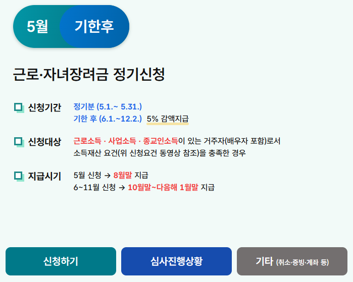 - ✅ 정기 신청 (2025년 5월 신청) → 2025년 9월 지급